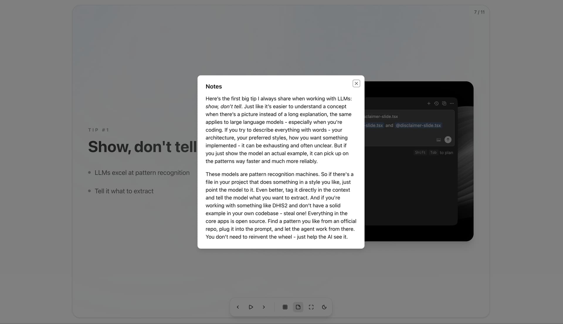 Note: I have transcribed and summarized the relevant parts of the presentation and added this as speaker notes on the website. These notes can be accessed by clicking the sticky note icon in the dock or pressing ‘N’. This way, you can easily find back to my thoughts on different topics.